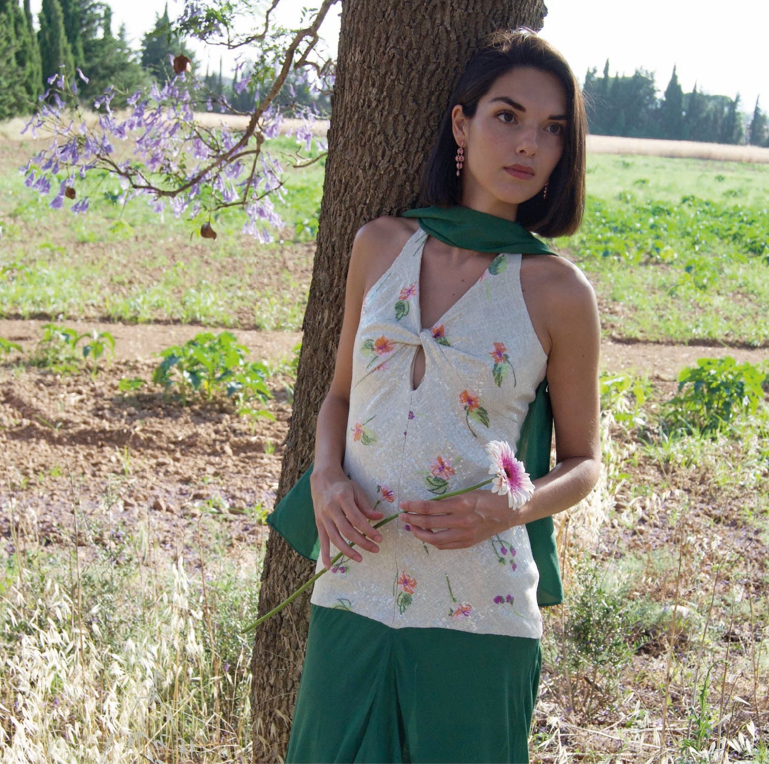 Usamos tejidos de bajo impacto como algodón, viscosa o seda natural. Nunca poliéster convencional, solo reciclado.